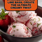 8. Serve and Garnish: Scoop into bowls or cones. Garnish with fresh basil leaves, a drizzle of strawberry syrup or honey, and thin lime slices for an elegant presentation.