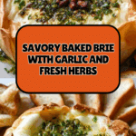 Savory Baked Brie with Garlic and Herbs is an elegant and easy appetizer perfect for any gathering. Warm, creamy Brie topped with fragrant garlic and fresh herbs creates a delightful flavor combination that pairs beautifully with crackers or baguette slices.