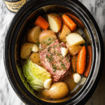 This Slow Cooker Guinness Corned Beef and Cabbage recipe delivers a tender, flavorful corned beef brisket infused with the rich taste of Guinness beer. Slow-cooked with potatoes, carrots, garlic, and cabbage, this hearty dish is a comforting classic perfect for St. Patrick’s Day or any cozy meal.