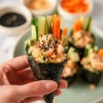 Spicy Shrimp Sushi Hand Rolls are a fun and flavorful way to enjoy sushi at home. With tender shrimp tossed in a spicy mayo sauce and fresh veggies wrapped in crispy nori, these hand rolls are perfect for a quick dinner or entertaining guests.