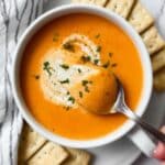 Store any leftover bisque in an airtight container in the refrigerator for up to 3 days. Reheat gently on the stove over low heat, stirring occasionally to prevent scorching. This soup also freezes well; thaw overnight in the fridge before reheating.