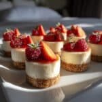 5. Chill the bites: Place the coated cheesecake bites on a tray lined with parchment paper and refrigerate for at least 1 hour, or until firm and chilled before serving.