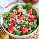 Keywords: Strawberry Spinach Salad, poppy seed dressing, healthy salad, summer salad, vegetarian salad, fresh salad, spinach salad, almond salad