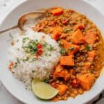 Keywords: Sweet Potato Curry, Red Lentil Curry, Vegan Indian Curry, Coconut Milk Curry, Healthy Vegan Dinner