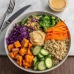 This Thai Peanut Sweet Potato Buddha Bowl combines roasted sweet potatoes with fresh veggies and a creamy, tangy peanut sauce for a satisfying and flavorful meal that’s perfect for a healthy lunch or dinner.