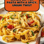 Keywords: tomato garlic butter pasta, easy pasta recipe, quick pasta dish, fettuccine with tomato sauce, garlic butter pasta, umami pasta, chili flakes pasta